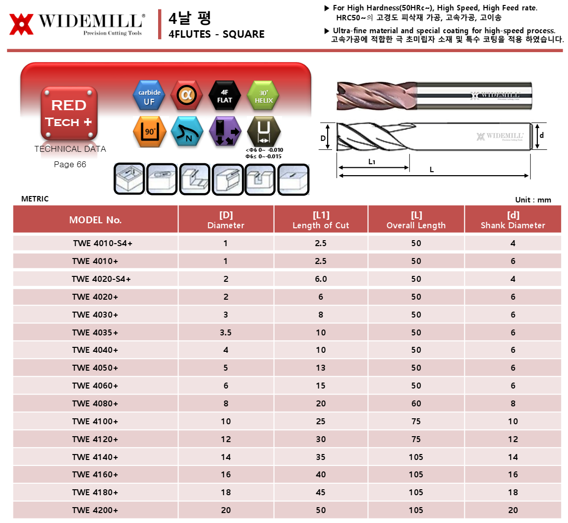 Suitable for materials up to 55HRC, performs well on Alloy, Mould, Tool and Die Steel,  Cast Iron.