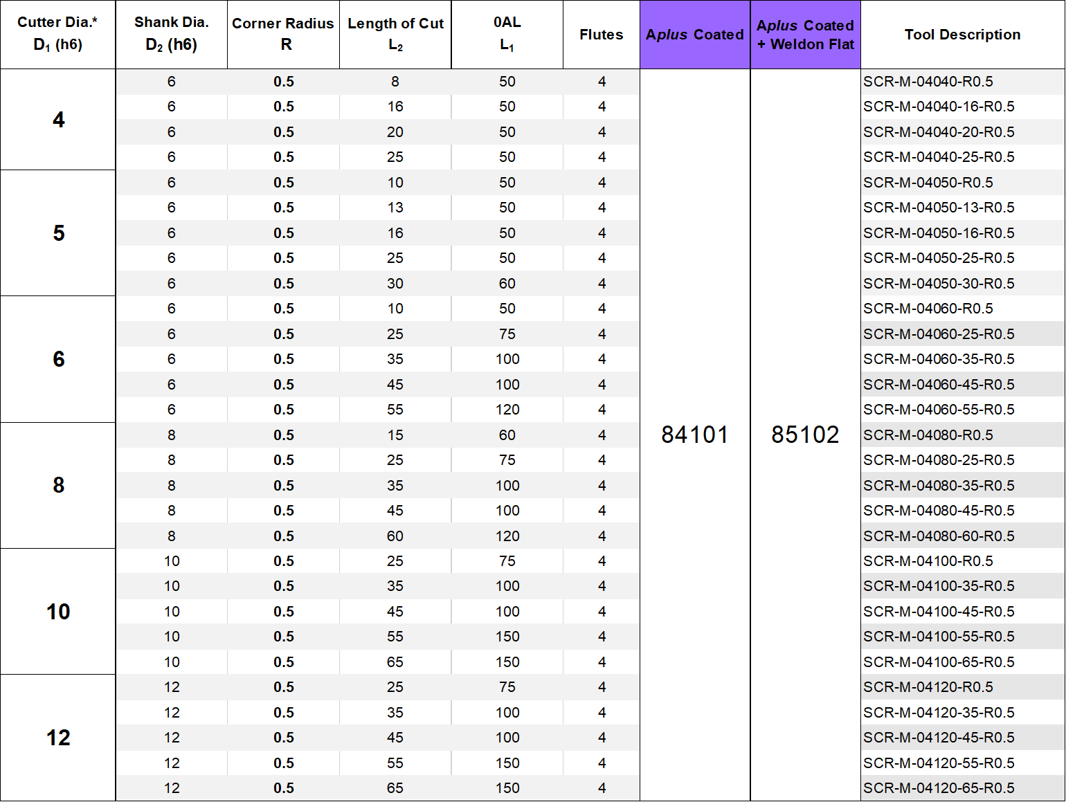 4 FLUTE - CORNER RADIUS