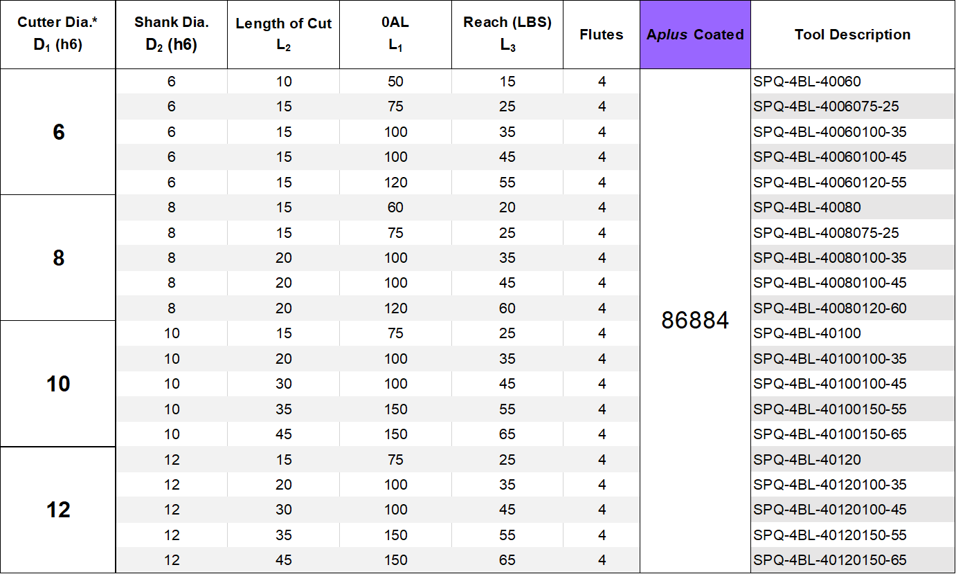 T-BELI SPQ-4BL 4 FLUTE - BALL Reduced Neck