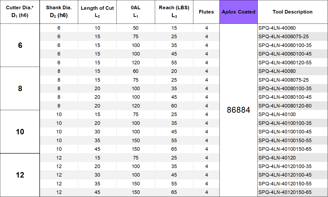 T-BELI SPQ-4LN 4 FLUTE - SQUARE Reduced Neck