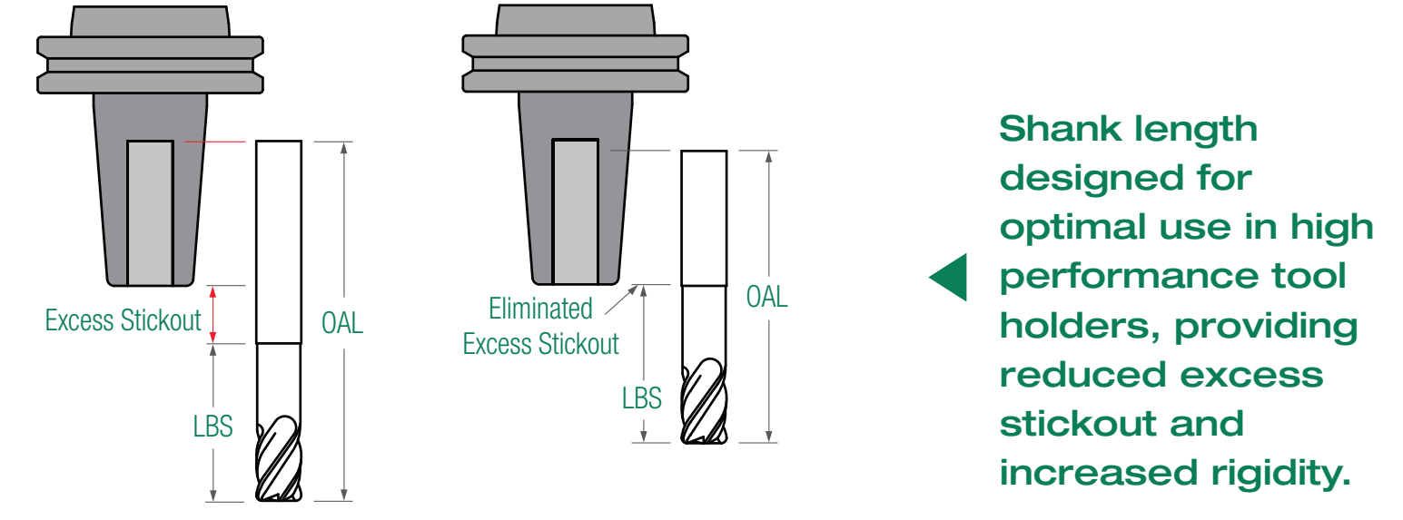 • 5 flute variable pitch design for reduced harmonics and