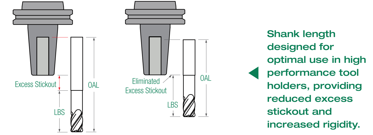 • 4 flute variable pitch and offset chipbreaker geometry for