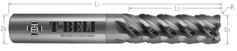 T-BELI . TBAL-5 5 FLUTE - CORNER RADIUS Chipbreaker Rougher - Variable Pitch - For High Efficency Milling