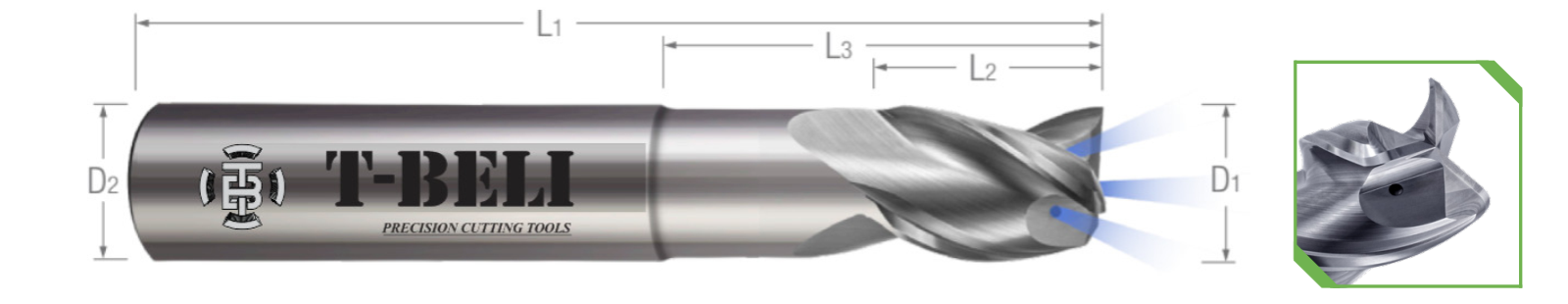 T-BELI TPGC-R-3 3 FLUTE - SQUARE Coolant Through - High Balance
